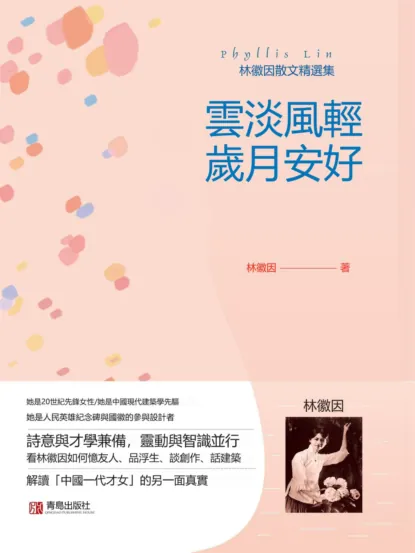 林徽因,中國著名女建築師、詩人和作家,人民英雄紀念碑和中華人民共和國國徽深化方案的設計者之一,建築師梁思成的第一任妻子。她的一生著述不多,卻在詩歌、散文、小說方面成績斐然,代表作《你是人間的四月天》被廣為傳誦。